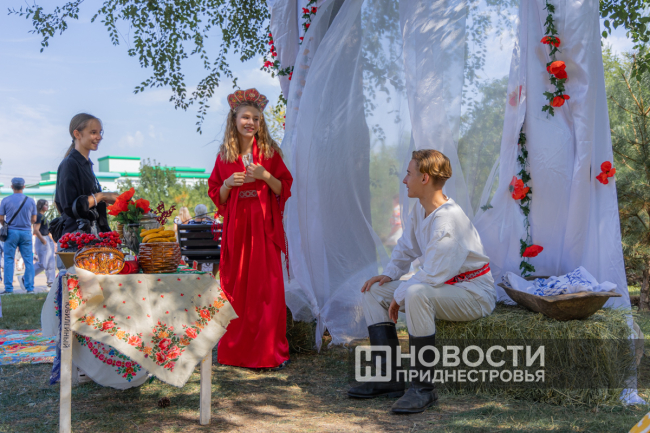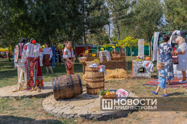 Неподалёку от сцены разместились национальные подворья (русское, молдавское, украинское) в виде фотозон. Молдавское, в примеру, было представлено в стиле каса-маре - главной комнаты в доме. Приднестровцы и гости столицы смогли увидеть предметы быта, одежду, а также попробовать национальные блюда.