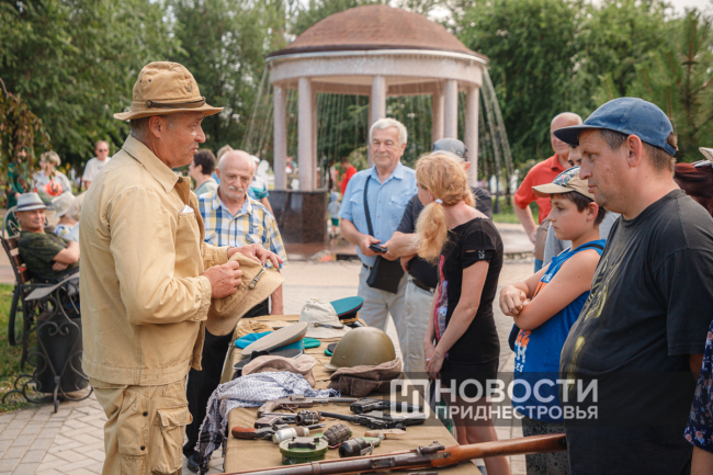 Неподалёку от сцены расположилась выставка оружия, организованная общественной организацией «Наследники Побед». На ней было представлено вооружение и экипировка воинов-афганцев. Каждый экспонат можно было взять в руки, примерить, сделать фотографии. Особенно выставка заинтересовала детей.