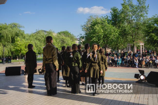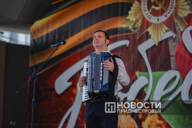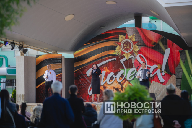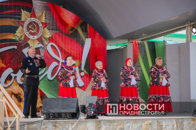 Сегодня участники фестиваля – артисты со всей республики от Каменки до Днестровска - поздравляли с 80-й годовщиной Победы советского народа в Великой Отечественной войне. Все песни были посвящены этой знаменательной дате.