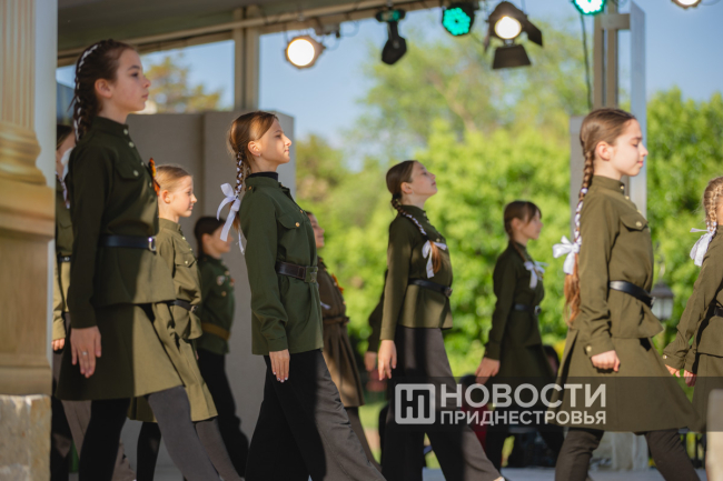 Первыми выступили гости из Каменки. Солистка Народного эстрадного ансамбля «Лагуна» Елена Постика рассказала, что коллектив исполнил для тираспольчан свою авторскую песню «Бессмертный полк». Недавно на неё был снят клип: его премьера состоялась 9 мая на Первом Приднестровском телеканале.