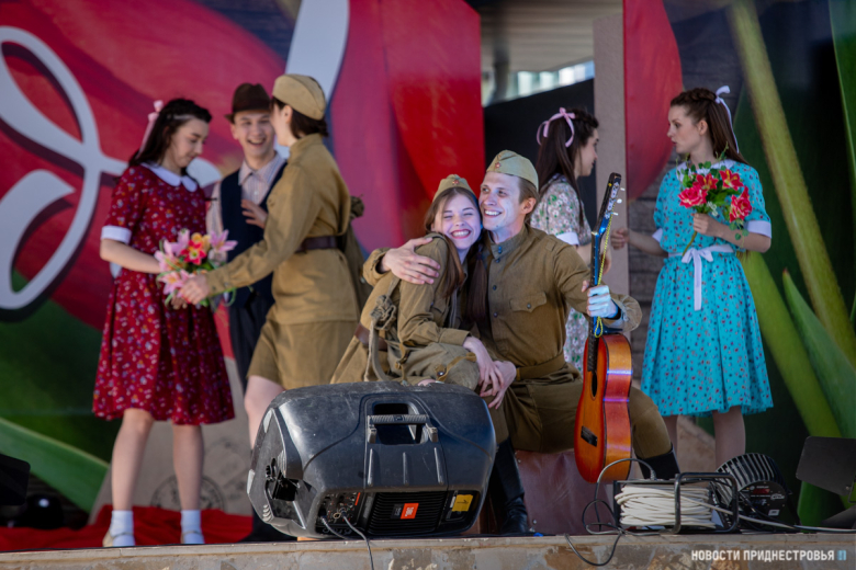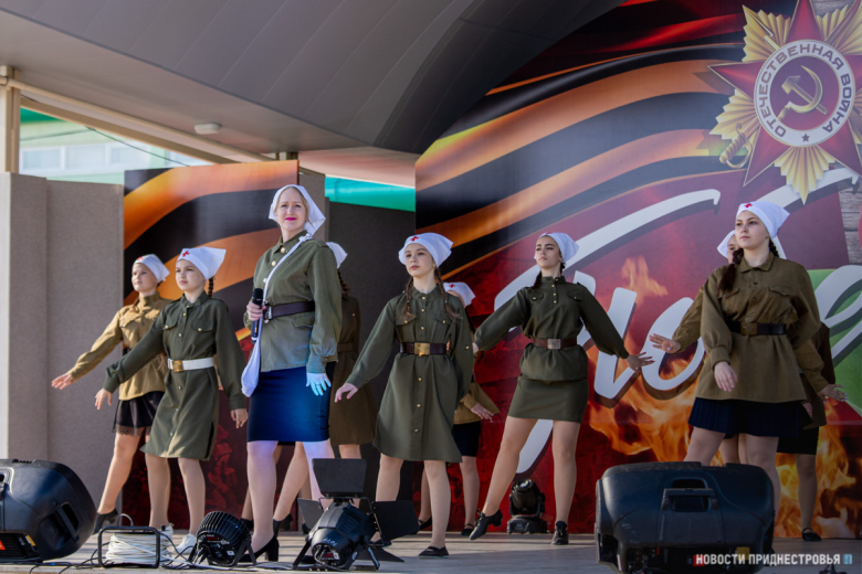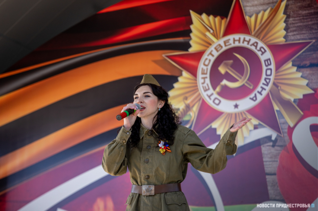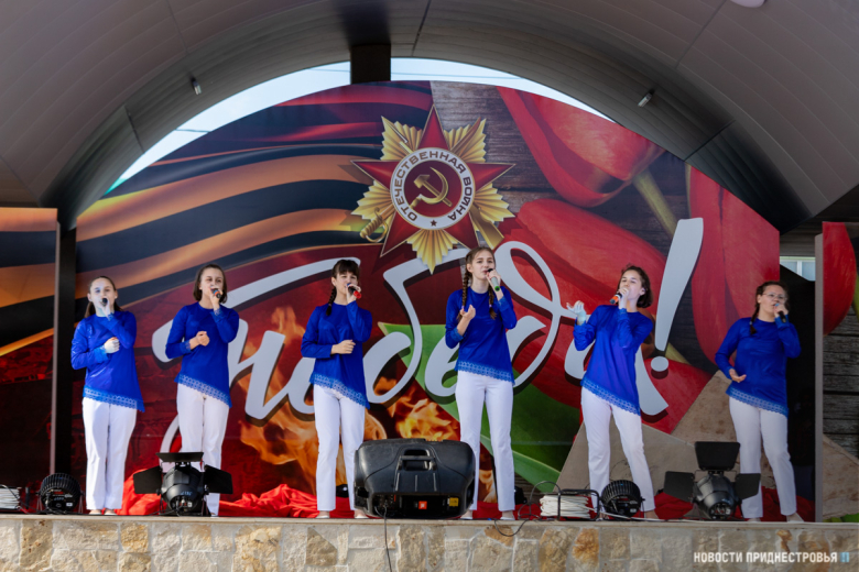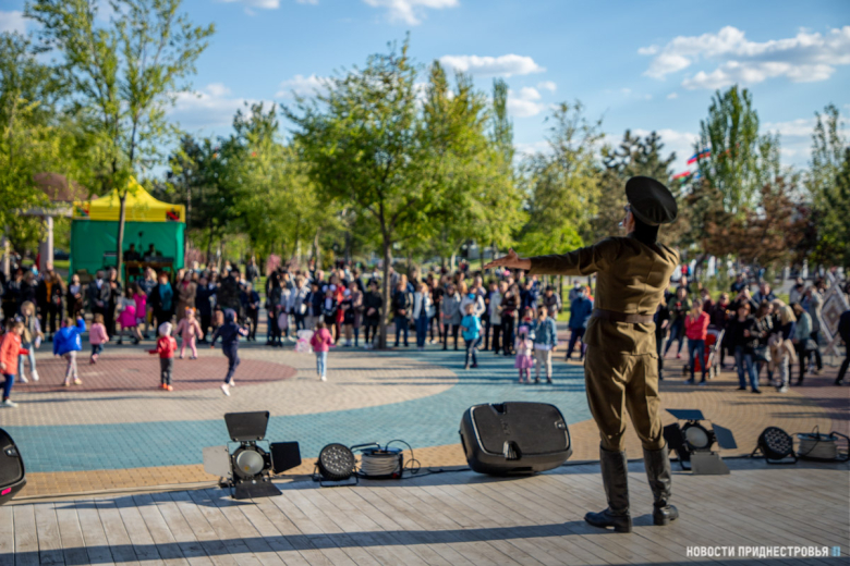 Тирасполь, 9 мая. /Новости Приднестровья/. С 76-й годовщиной Победы тираспольчан и гостей столицы поздравили творческие коллективы города. В праздничный вечер на сценической площадке в Екатерининском парке играла военная музыка. Открыл концертную программу вокальный ансамбль «Надежда» МОУ «Детский дом». Песни военных лет также исполнили вокалисты столичных домов и центров культуры.