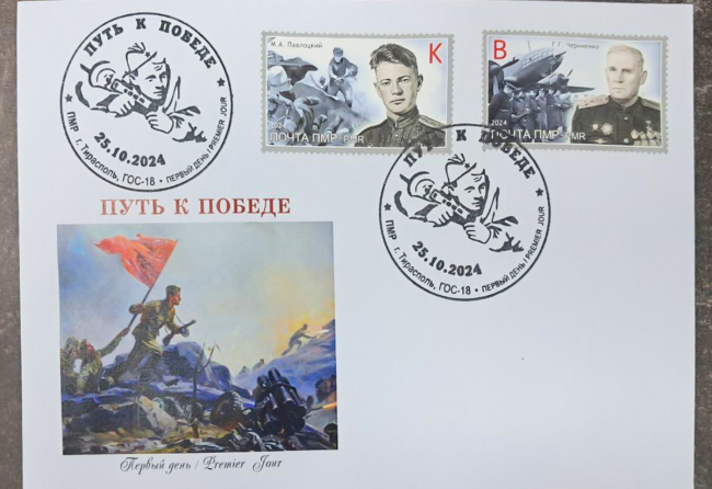Подготовкой выпусков занималось Издательство «Марка Приднестровья». В серии «Путь к Победе» изобразили героев Советского Союза - уроженцев Тирасполя Михаила Павлоцкого и Георгия Черниенко.