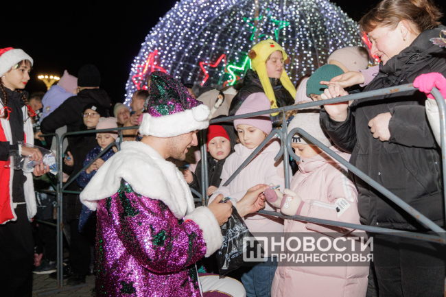 Тирасполь, 13 декабря. /Новости Приднестровья/. На площади им. А. В. Суворова в Тирасполе прошло мероприятие, которое официально ознаменовало старт новогоднего сезона — зажжение огней на главной ёлке Приднестровья. Для публики подготовили большую развлекательную программу: шоу, танцы, песни, хороводы, флешмобы, фотозоны и новогоднюю ярмарку. На праздник пришли сотни людей.