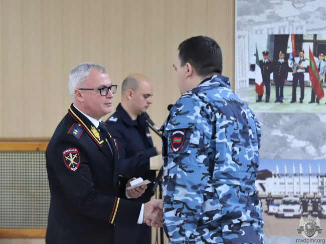 Праздничное мероприятие продолжилось в клубе ТЮИ, там собрались курсанты, студенты, преподаватели и руководители института. Поздравить виновников торжества прибыл министр внутренних дел ПМР Виталий Нягу.