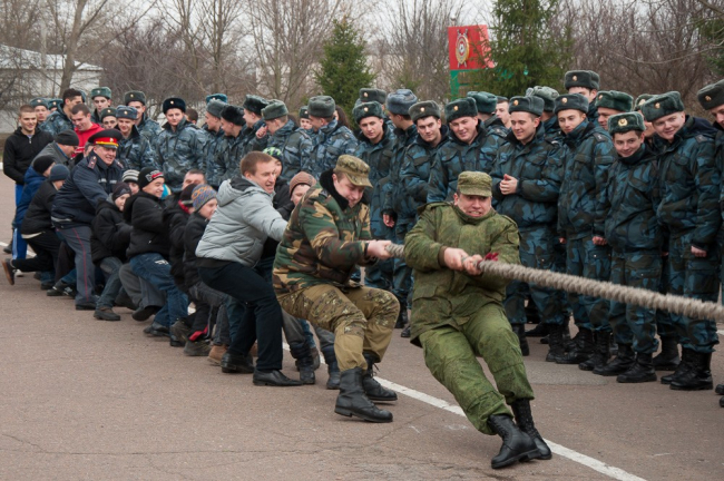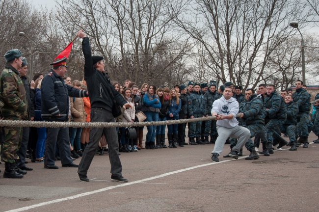 Как и положено, на праздник пригласили гостей – кадетов Республиканской кадетской школы-интерната и воспитанников Республиканского учебно-воспитательного комплекса им. Макаренко. И хотя последние оказались самыми маленькими участниками, во всех конкурсах, в том числе и в перетягивании каната, они участвовали наравне со взрослыми.
