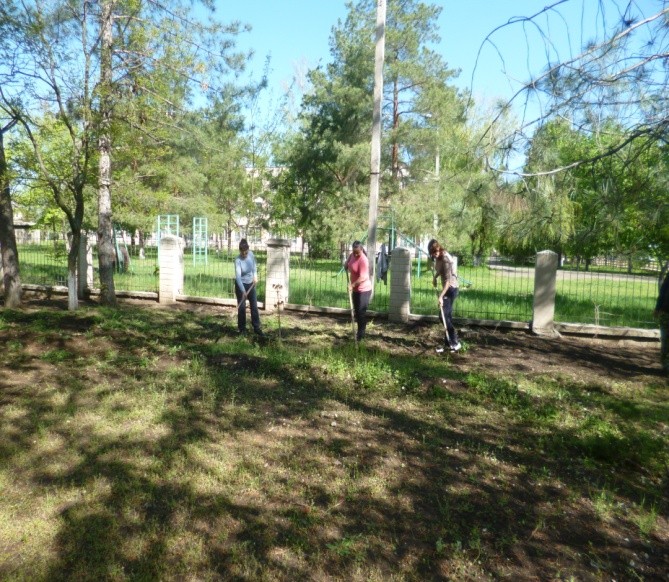 Также, вооружившись вениками, метлами, совками и лопатами, на уборку учреждения и прилегающих клумб сегодня вышли сотрудники Дома ветеранов п. Первомайск.