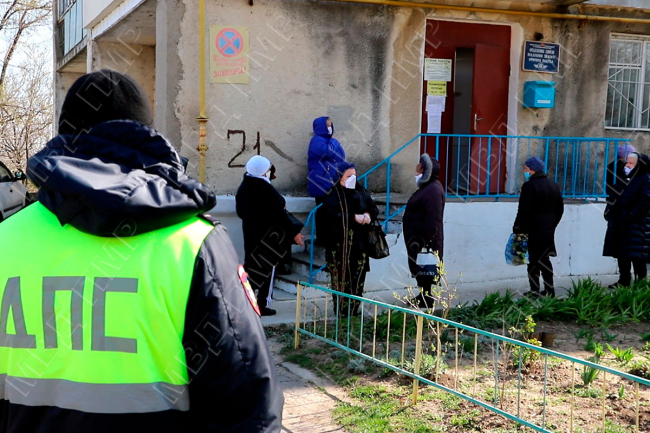 Как сообщает пресс-центр МВД ПМР, процедура получения пенсий происходит с учётом предписанных санитарно-эпидемических требований: столы обработаны антисептиком, кассиры в масках, перчатках и защитных костюмах.