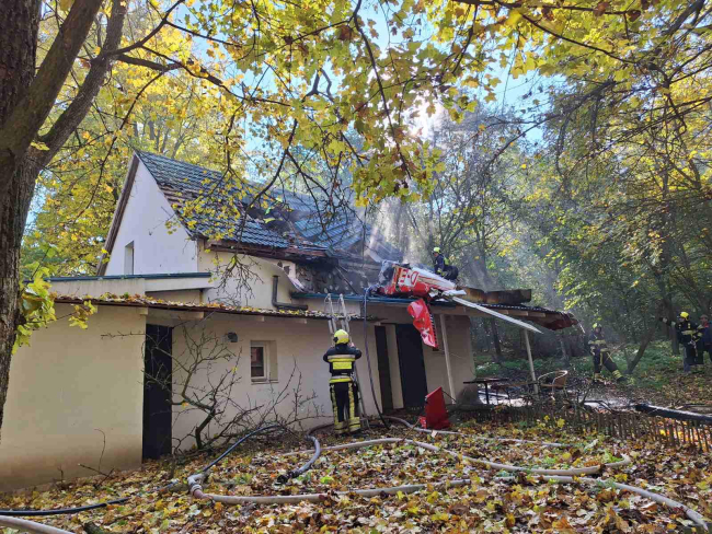 В инспекторате рассказали, что сообщение о пожаре на базе отдыха поступило около десяти утра. Огонь вспыхнул в результате падения сверхлегкого самолета Socata TB-20, зарегистрированного в Германии, на крышу одноэтажного здания.