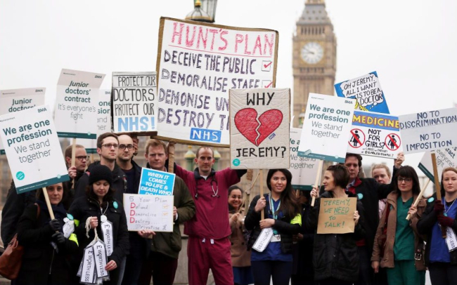 В феврале «The Guardian» писал, что из-за забастовки младших врачей в Великобритании отменили более 2884 операций. Тогда забастовка началась из-за зашедших в тупик переговоров между Британской медицинской ассоциацией, объединением работодателей и Департаментом здравоохранения относительно нового контракта, по условиям которого молодым врачам предлагают начать работать с августа. Основной причиной забастовки является несогласие врачей с порядком выплаты заработной платы за работу в будние и выходные дни.