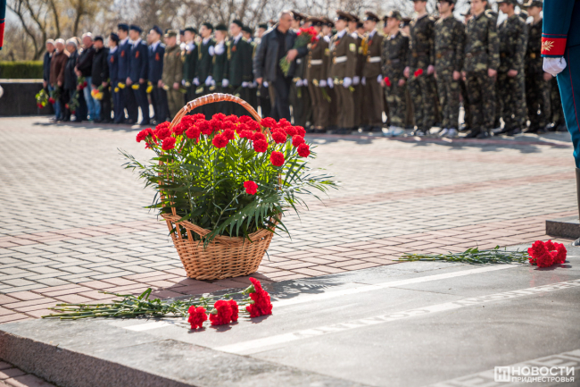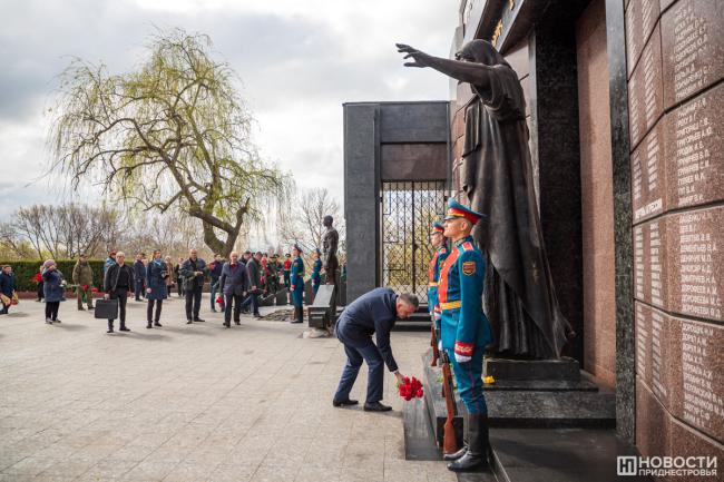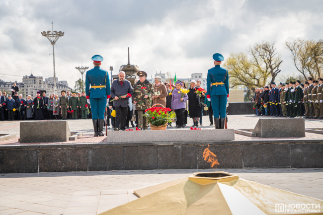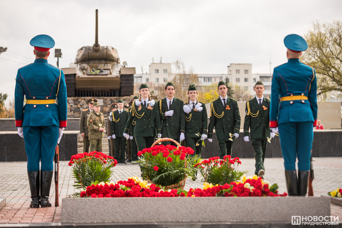 Тирасполь, 12 апреля. /Новости Приднестровья/. Тирасполь в 79-й раз отмечает годовщину своего освобождения от фашистов. Каждый год праздничные мероприятия начинаются со столичного Мемориала Славы, где захоронены погибшие в годы Великой Отечественной войны. В митинге участвует руководство республики и города, представители общественных и патриотических организаций, школьники, юнармейцы и суворовцы.