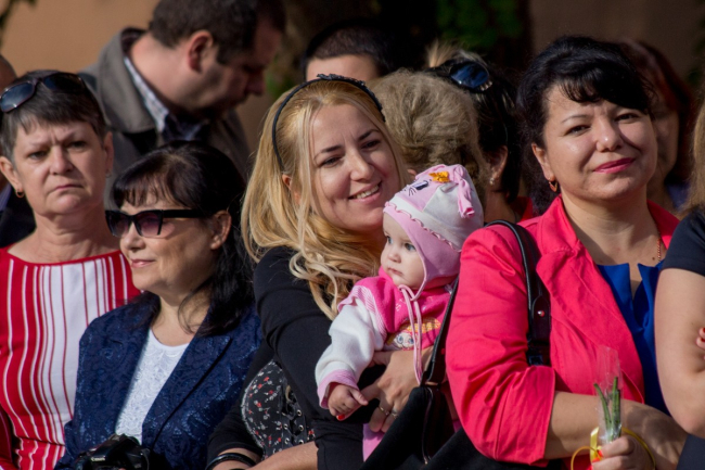 В этом году в первой Бендерской гимназии два первых класса. Непривычно серьёзные и празднично-нарядные именно они сегодня были главными героями праздника и именно в их адрес звучало больше всего поздравлений. Как от гостей, так и от старших товарищей.