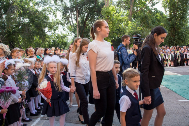 «Это День знаний для всех учебных заведений, как среднего, так и средне-специального и высшего уровня, но хочу, конечно, выделить среднюю школу. Без развитой средней школы трудно представить развитое образование, интеллектуальный уровень наших граждан и самого государства. Очень отрадно, что в Приднестровье функционирует 160 школ, и сегодня мы не сокращаем школы, а, наоборот, их открываем, и именно 1 сентября откроется новая школа в с. Незавертайловка, в сельской местности, это очень хорошо. Всего сегодня пришли в школу 45 тысяч учеников, это очень хорошо, что первоклассников на 1,5 тысячи больше, чем в прошлом году, если есть дети, есть молодёжь, есть будущее у Приднестровья», — сказал Вадим Красносельский.
