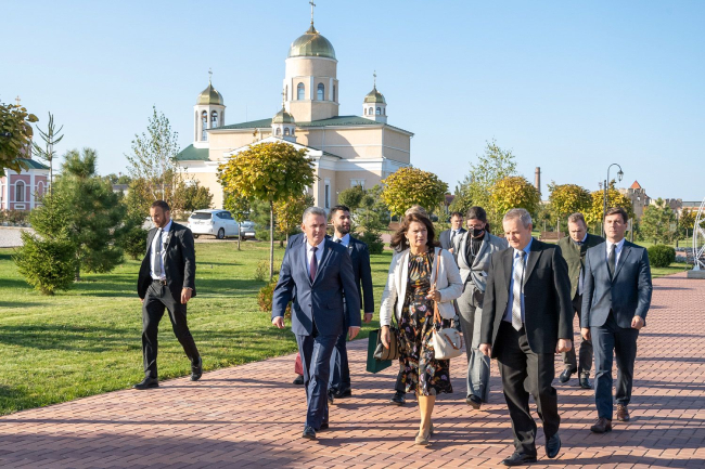 Президент ПМР и члены европейской делегации посетили храм и парк Александра Невского в Бендерах