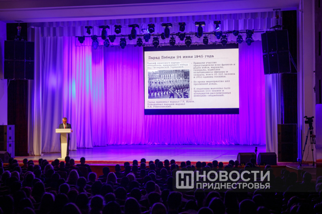 Тирасполь, 19 апреля. /Новости Приднестровья/. Необычный открытый урок истории Великой Отечественной войны для школьников и студентов прошел сегодня в Тирасполе. Провел его Президент ПМР Вадим Красносельский во Дворце Республики, куда приехали больше семи сотен учащихся со всего Приднестровья. Открытый урок стал третьим в цикле лекций республиканского проекта Министерства просвещения ПМР «Диалог на равных».