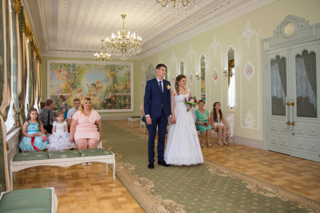 Первыми преображения столичного ЗАГСа оценили Владимир Блинов и Елена Карагодина. Познакомившись прошлым ноябрём, они, как и положено, подали заявление за месяц до предполагаемой даты. О том, что на семейную жизнь их будут благословлять и руководство города, даже не подозревали.