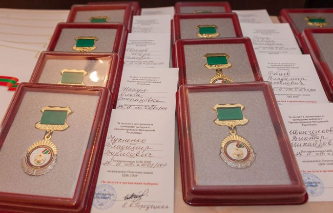 Рыбница, 25 сентября. /Новости Приднестровья/. Сегодня в Рыбницкой госадминистрации председатель Центральной избирательной комиссии ПМР Елена Городецкая сообщила о решении наградить посмертно рыбничан Владимира Воеводина и Анатолия Молгачева почетными знаками «За заслуги в организации выборов». Эти люди стояли у истоков формирования государства, избирательной системы и законодательства республики.