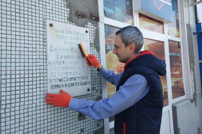 «Волонтёры Победы» восстановили мемориальную доску на улице Ермакова в Бендерах