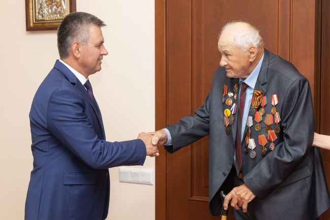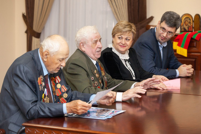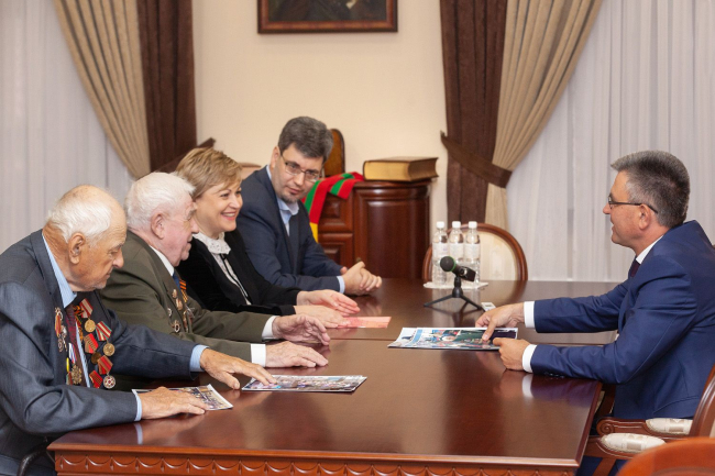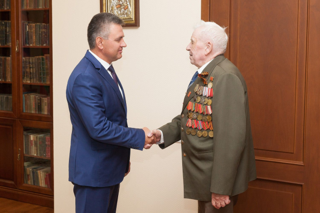 Тирасполь, 16 мая. /Новости Приднестровья/. Президент Вадим Красносельский встретился с Владимиром Громовым и Иваном Слюсарем – ветеранами Великой Отечественной войны, которые были приглашены на парад 9 Мая в столицу Российской Федерации. В праздничном мероприятии приняли участие тысячи ветеранов со всего мира, сообщает пресс-служба главы государства.