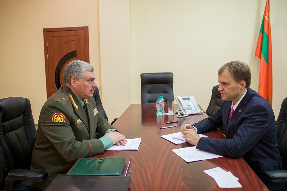 В ходе совещания с Главой государства министр обороны ПМР Александр Лукьяненко проинформировал Евгения Шевчука о том, что, несмотря на сложные экономические условия, ведомство принимает меры по поддержанию материально-технической базы на должном уровне.