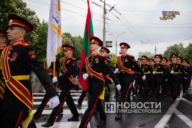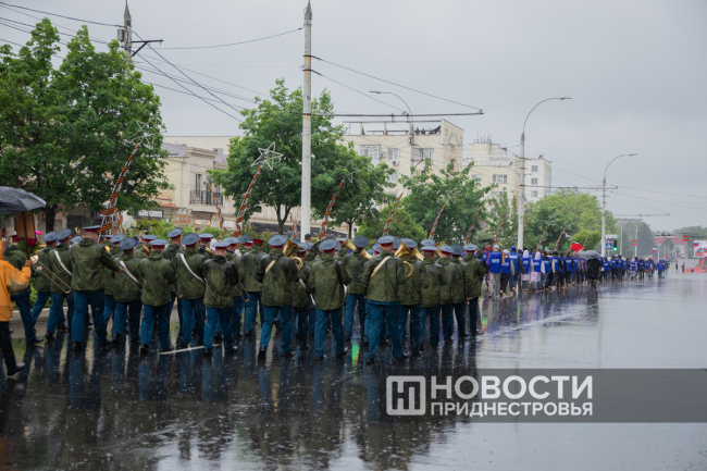 Ровно в 10:00 колонна выдвинулась по главной улице столицы в сторону Мемориала Славы. Среди тысяч приднестровцев шел Президент ПМР Вадим Красносельский с семьей.