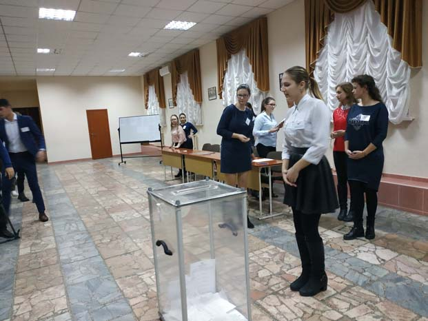 Каждый выполнял свою роль: избиратели регистрировались, получали избирательные бюллетени и голосовали, чему способствовала работа членов избиркома, а наблюдатели в ходе голосования выявляли ряд нарушений, на чем акцентировала внимание председатель комиссии (в рамках игры были проиграны основные виды нарушений избирательного законодательства при голосовании).