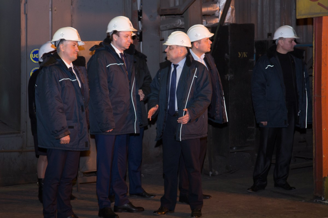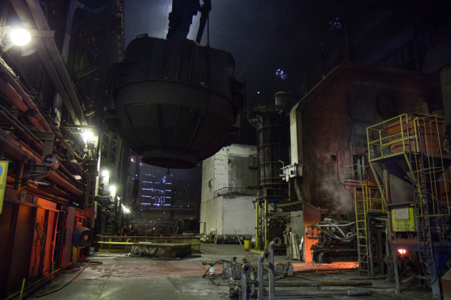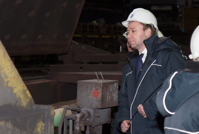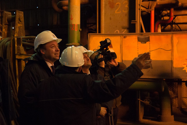 Вместе с новым гендиректором завода Сергеем Корневым они присутствовали при процессе выплавки стали и её выпуске. За одну плавку заводская печь – начальное звено в длинной производственной цепочке – «съедает» 140 тонн лома и при температуре 1680°C превращает его в кипящую жидкость.