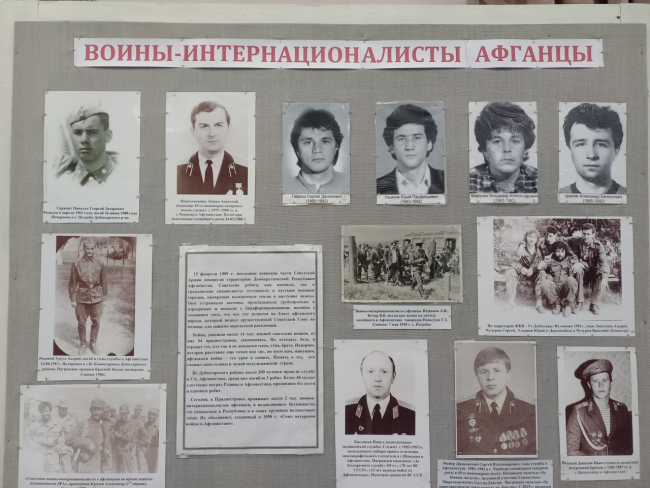 Отдельное место на выставке занимает память о земляках, исполнявших интернациональный долг на Кубе и в Афганистане. Фотографии, документы, личные вещи - всё это не только экспонаты, но и части человеческих судеб. Первыми прикоснулись к этой истории учащиеся школы № 4.