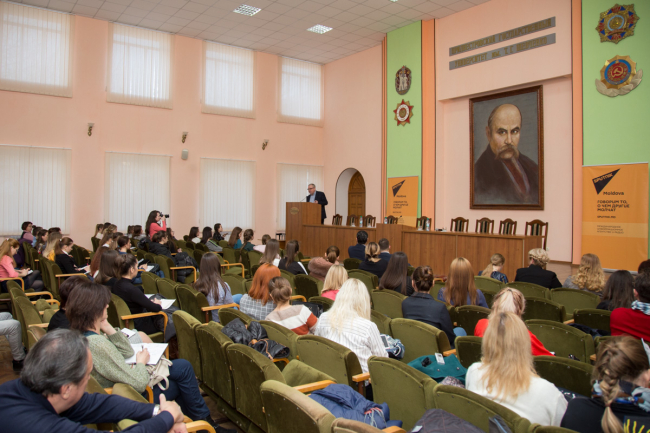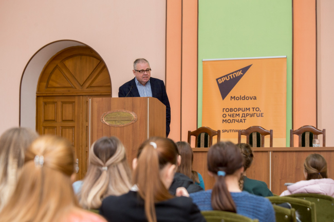 Тирасполь, 12 декабря. /Новости Приднестровья/. Пятая лекция второго сезона школы инновационной журналистики «Sputnik» традиционно прошла на площадке Приднестровского государственного университета им. Т.Г. Шевченко. Заключительную лекцию на тему «Журналистика 19/29" или главное о современной журналистике и её будущем» провел известный российский журналист и медиаэксперт, генеральный директор радиостанции «Говорит Москва», председатель Совета директоров газеты «Комсомольская правда» Владимир Мамонтов.