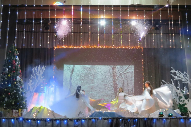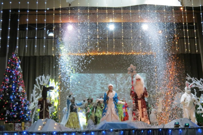 Театрализованное представление, подготовленное артистами Дворца культуры и спорта, сопровождалось танцами и вокальными номерами. Сказочные герои показали, что чудеса случаются с теми, кто в них верит, а добро всегда побеждает зло. По доброй традиции финалом праздника стало зажжение огней на новогодней ёлке вместе с Дедом Морозом.