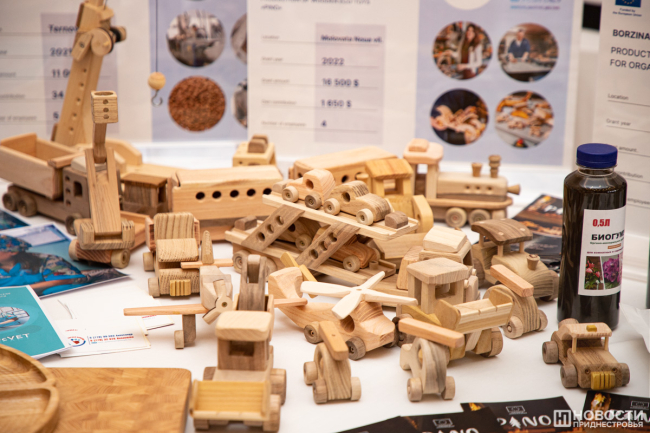 В ходе конференции была организована мини-выставка продукции предпринимателей, получивших гранты и создавших или развивших собственное дело. О своих историях успеха рассказали, в частности, Наталья Констандаки, открывшая в Бендерах Центр спортивного скалолазания «Покори свою высоту», Александра Калашник из села Гиска, представляющая семейную винодельню «КисловЪ», и руководитель Центра инновационного развития и технологий «Цифра» из Рыбницы Ирина Терлюга.