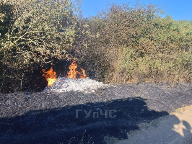На окраине Григориополя тоже загорелась сухая трава. Огнеборцев вызвали очевидцы. Через улицы Васканова и Карла Маркса огонь распространился на большую территорию, но угрозы жилым домам и другим участкам не было.