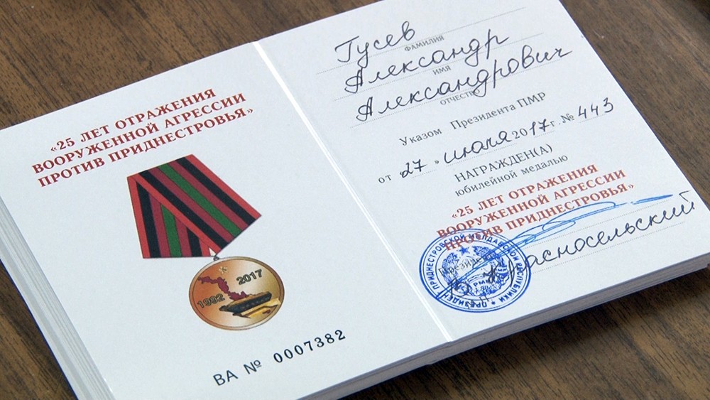 Награды «25 лет отражения вооружённой агрессии против Приднестровья» вручило руководство Дубоссарского района