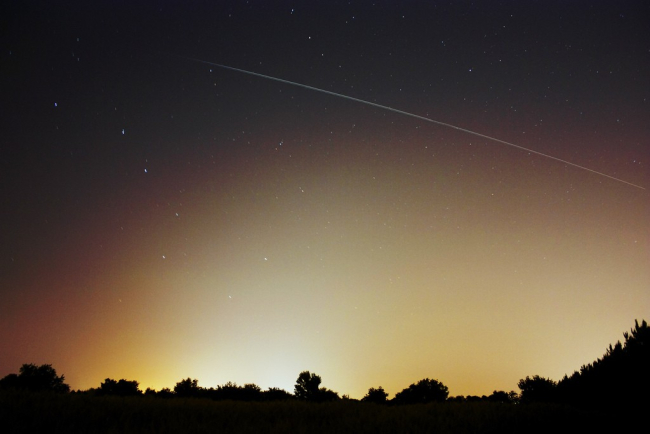 Международная космическая станция в небе похожа на яркую и быстро движущуюся точку. Скорость МКС относительно земли составляет 28.000 км/ч.