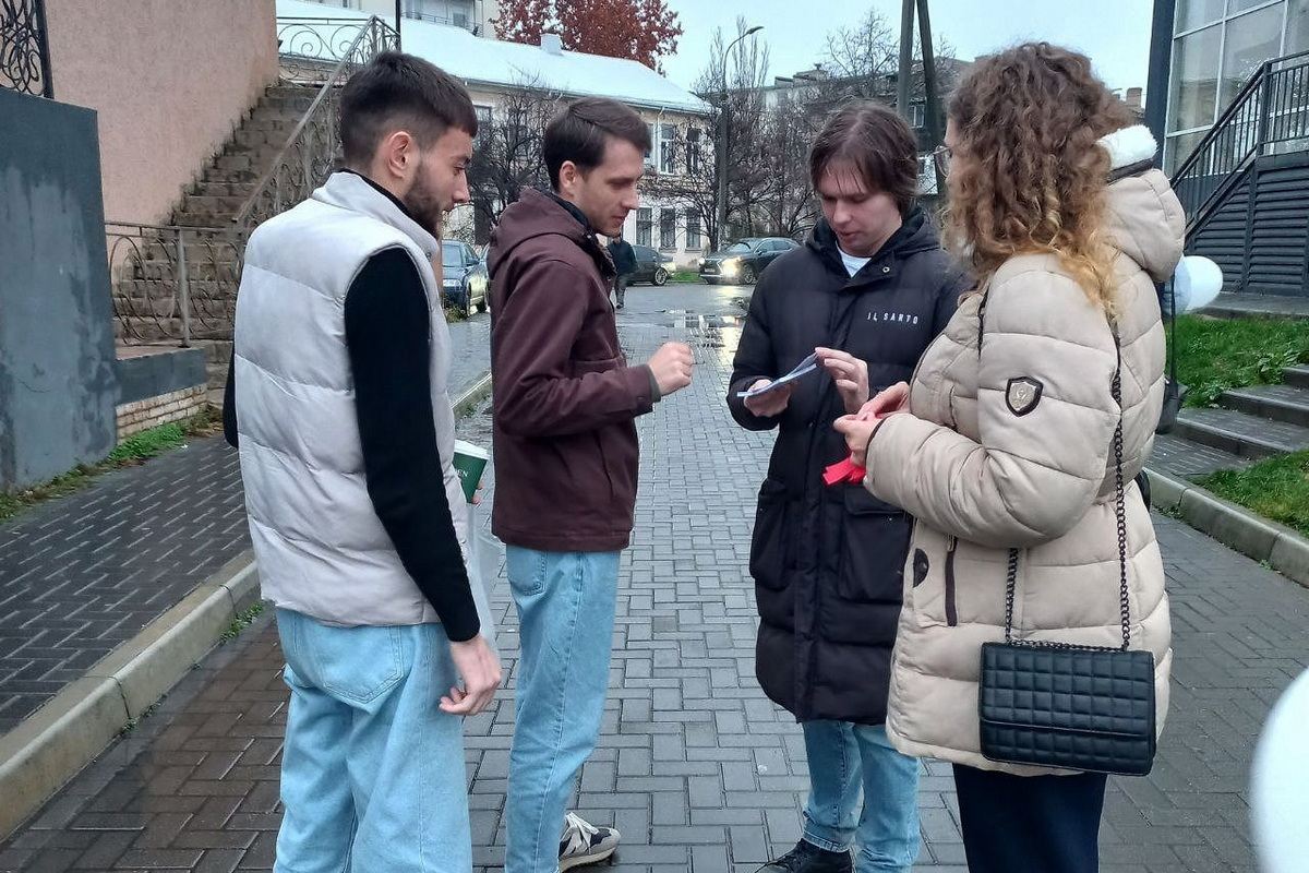 Активисты молодёжного движения раздавали прохожим памятки, белые шары и красные ленты