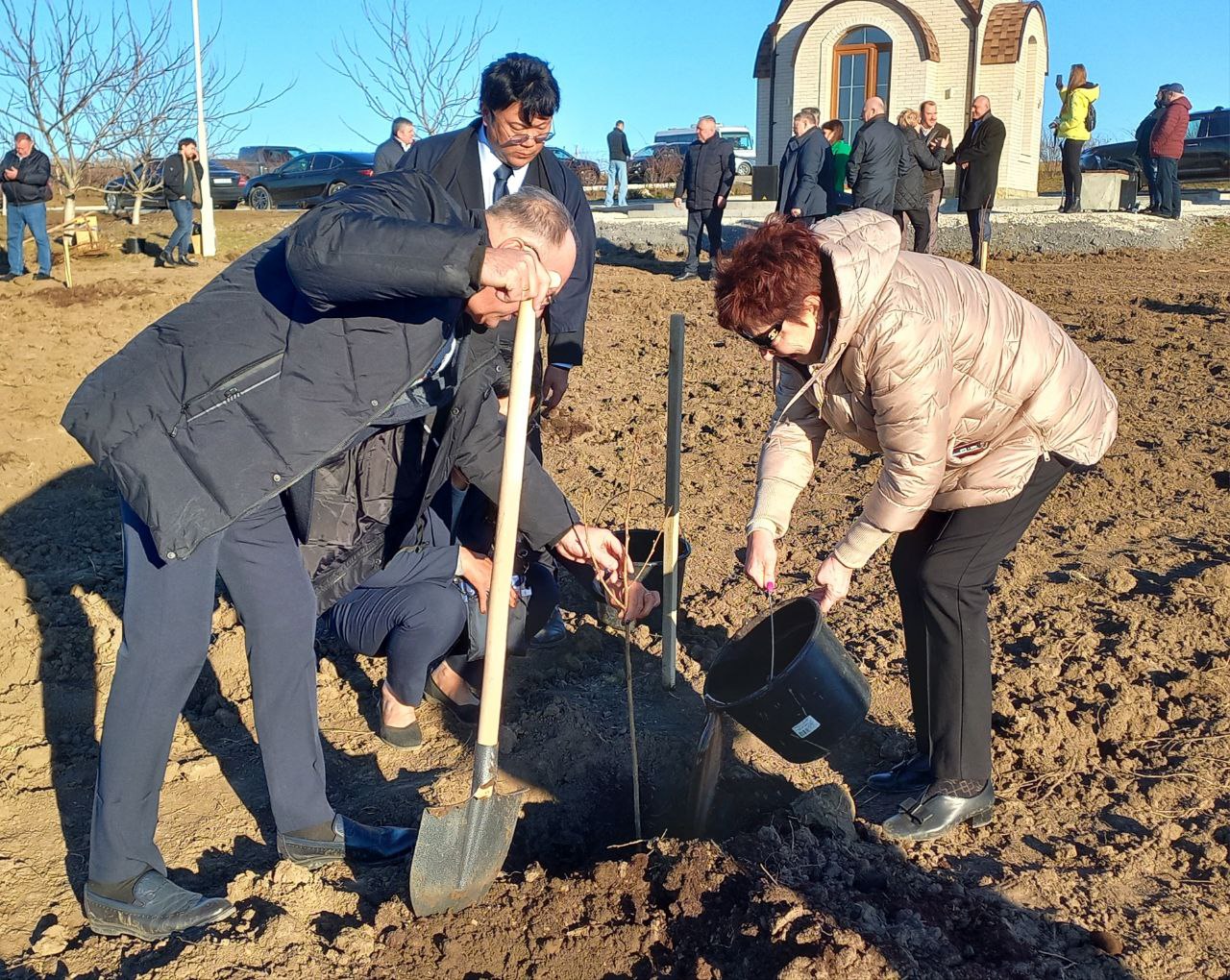 «Сегодня, когда во многих странах мира происходят тревожные события, миссия мира на земле особенно важна. Место для посадки выбрали не случайно. Здесь установлена часовня Трифона Зарезана — покровителя виноградарства, виноделия и охоты. Эти склоны с прекрасным видом на Дубоссары, плотину и седой Днестр станут ещё красивее, когда здесь зацветёт розовая сакура», - сказал Олег Баев.