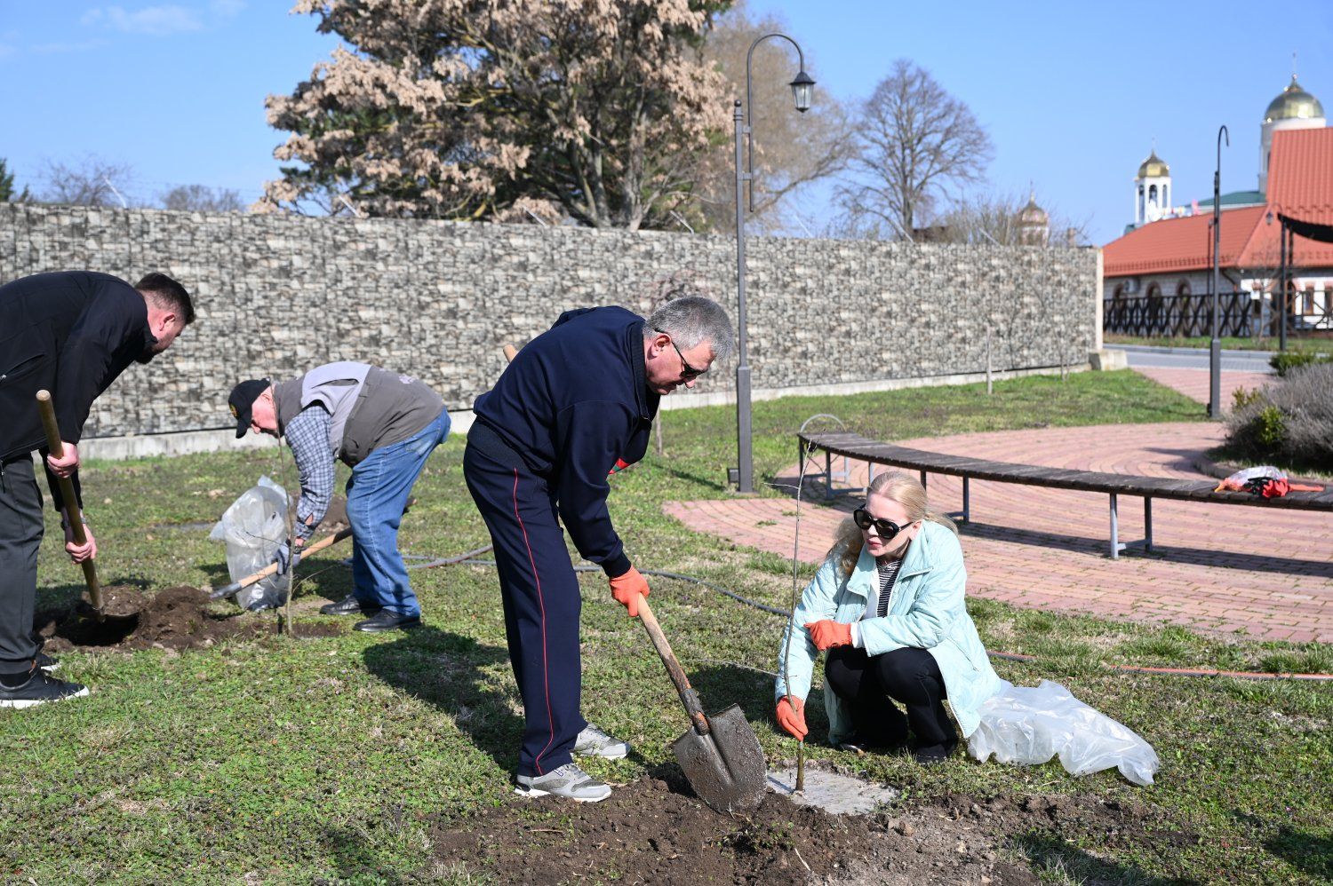Президент Вадим Красносельский с супругой сегодня в парке святого Александра Невского в Бендерской крепости высаживали дубы. 8 молодых деревьев появились возле воскресной школы, у детской площадки посадили туи и сливы. В парке вместе трудились сотрудники Администрации Президента, Аппаратов Правительства и Верховного Совета.