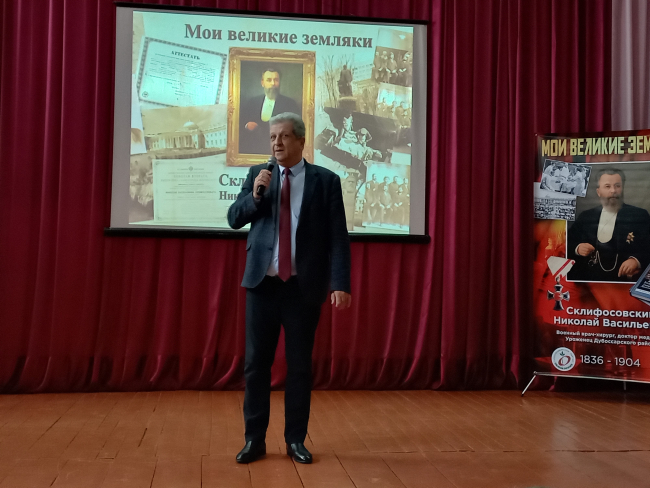 Дубоссары, 2 апреля. /Новости Приднестровья/. В дубоссарской гимназии № 1 состоялось мероприятие, приуроченное к 190-летию со дня рождения выдающегося хирурга, учёного и военного медика Николая Васильевича Склифосовского - уроженца села Дзержинское (бывший хутор Карантин) Дубоссарского района.