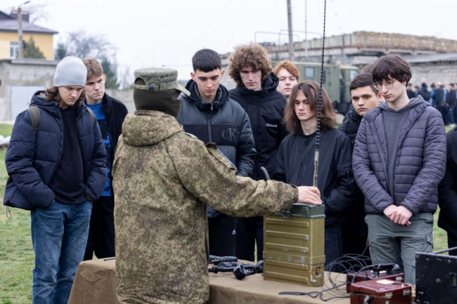Следующей локацией стали воинские части тираспольского гарнизона. Призывники получили возможность попробовать себя в роли военного связиста, ознакомились с образцами техники и средствами связи, посетили спальное помещение и спортивный зал.