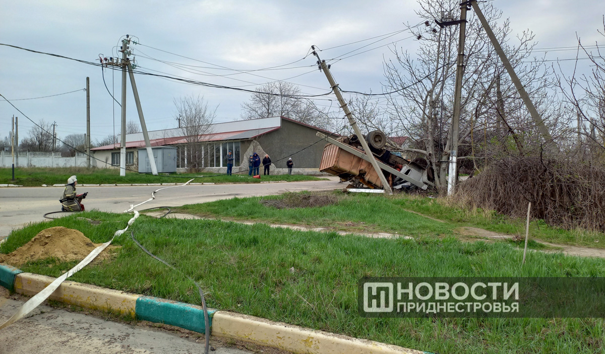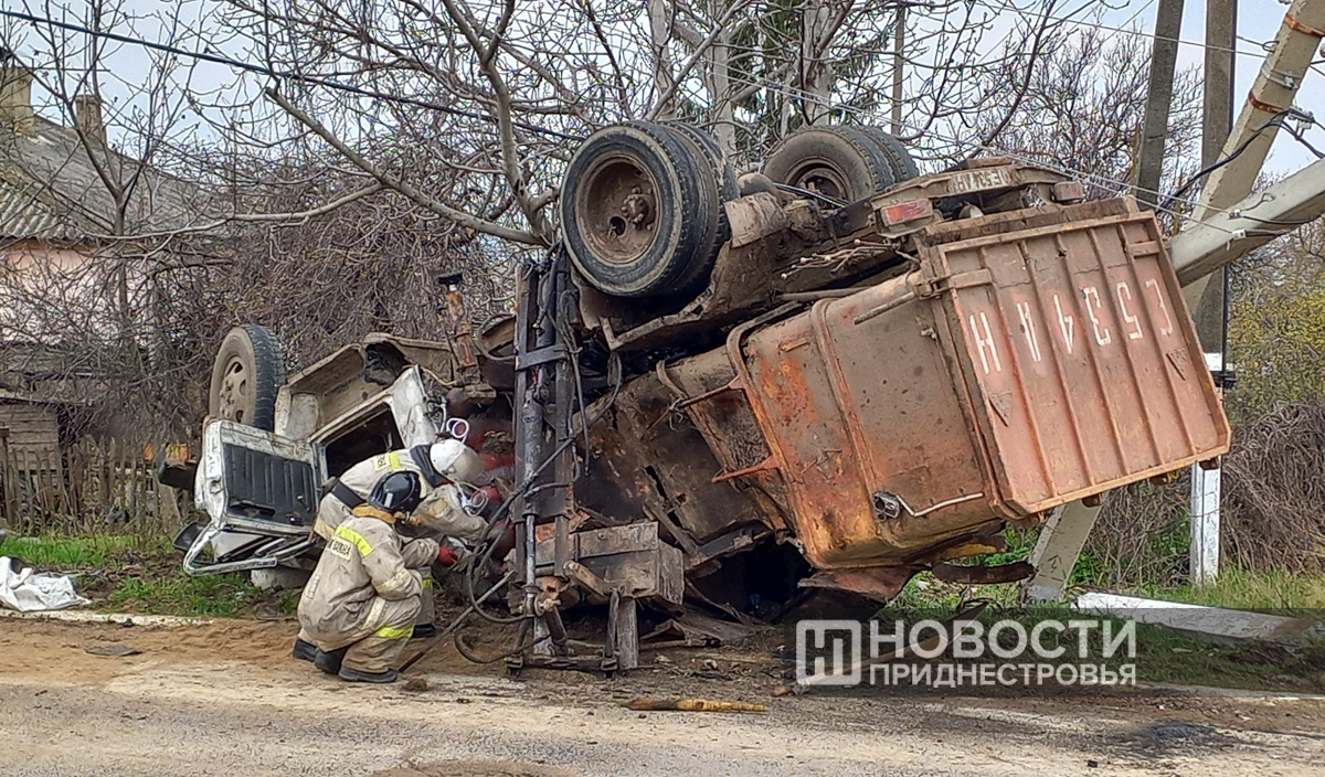 В Дубоссарах мусоровоз врезался в опору ЛЭП и перевернулся