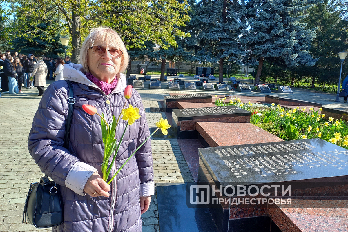 Сегодня почтить память павших пришли руководство города и района, защитники Приднестровья, представители трудовых коллективов организаций и предприятий, активисты общественных организаций, молодёжь, жители города. Жительница Дубоссар Галина Тимонова посетила мемориал вместе с представителями общества «Память».
