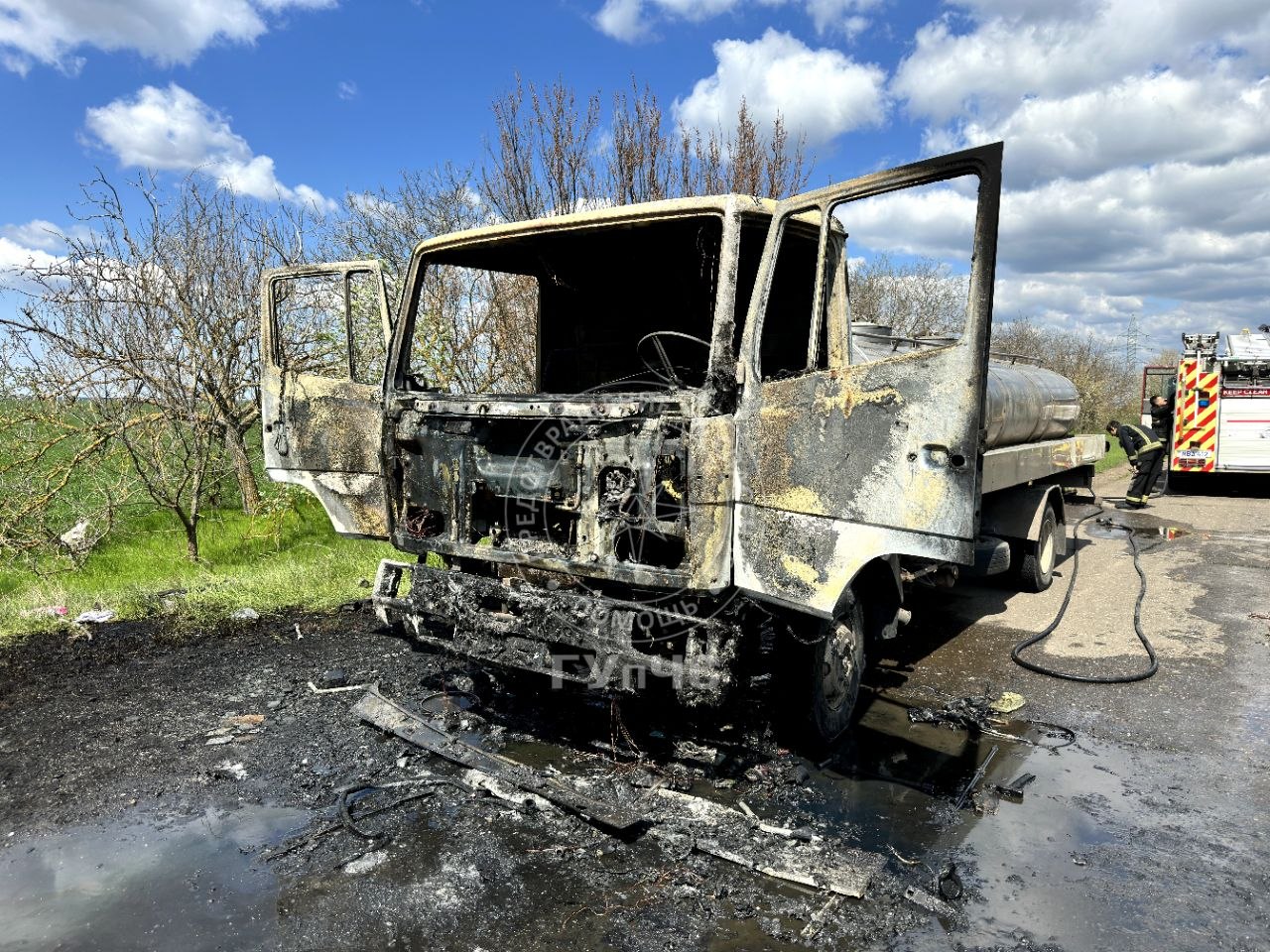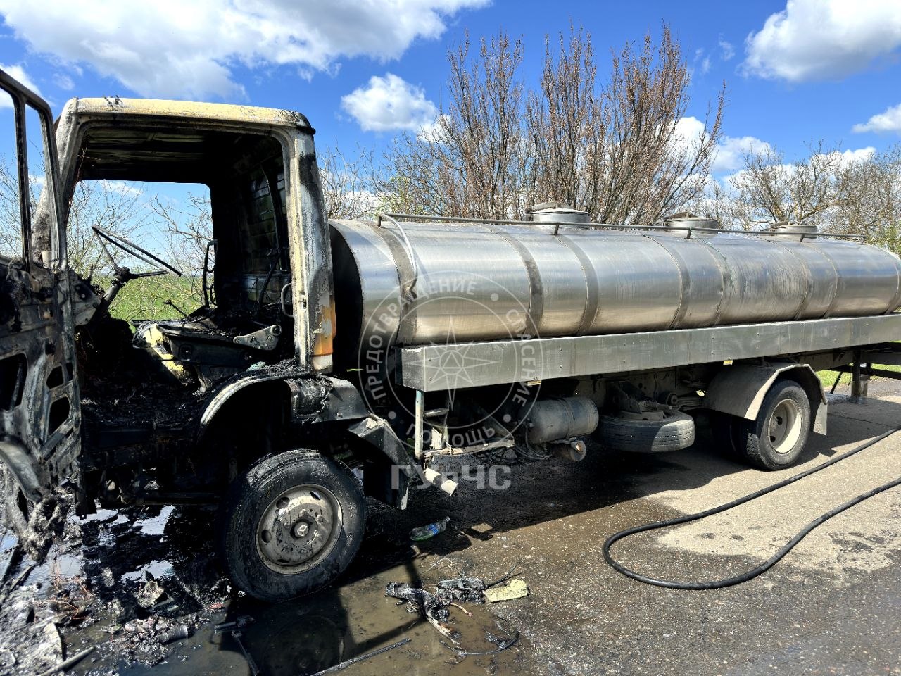 Причиной пожара стало короткое замыкание электропроводки. Кабина молоковоза полностью уничтожена огнём.