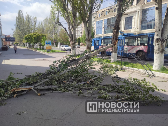 Тирасполь, 26 апреля. /Новости Приднестровья/. Сегодня днём на территории Приднестровья бушевал ураган и пылевая буря. Порывы ветра до 24 м/с валили деревья, столбы, рекламные щиты, ломали ветки, обрывали провода, срывали кровлю. Без света сейчас остаются более 300 улиц в некоторых селах Григориопольского, Дубоссарского, Рыбницкого, Слободзейского и Каменского районов. На местах работают аварийные бригады ЕРЭС.