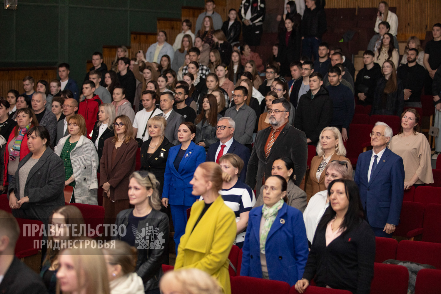 Поздравили коллектив, студентов и выпускников вуза заместитель председателя Правительства ПМР Виталий Нягу, министры просвещения Светлана Иванишина и здравоохранения Кристина Албул, председатель комитета Верховного совета по образованию, общественным объединением и СМИ Виталий Калин и заместитель председателя парламентского Комитета по социальной политике и здравоохранению Елена Соболева.
