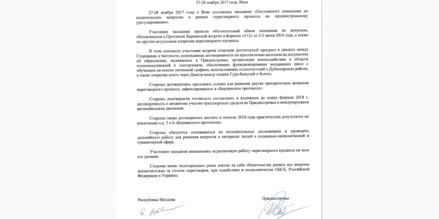 Документ приднестровская сторона распространила в ходе заседания руководящего органа миротворческой операции