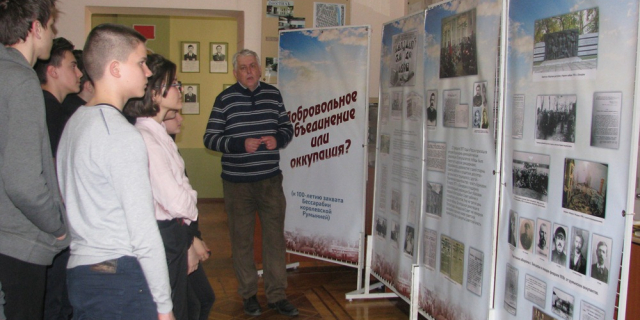 В Бендерах работает баннерная выставка «Добровольное объединение или оккупация?» Её организовали сотрудники городского историко-краеведческого музея к 100-летию захвата территории Бессарабии королевской Румынией 27 Апр., 2018, 10:42 Культура Приднестровье Бендеры