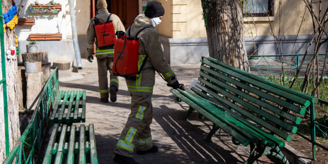 В работах по дезинфекции по всей республике принимают участие более 170 человек Со вчерашнего дня обработано 720 подъездов, 130 остановок, 185 детских площадок 24 Мар., 2020, 15:52 Общество коронавирус ЧП