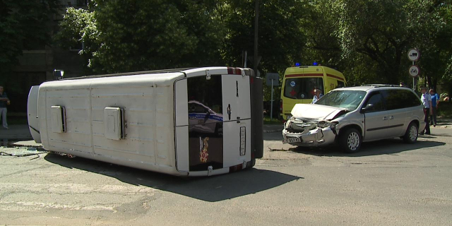 В Тирасполе на пересечении улиц Карла Маркса и Котовского перевернулась маршрутка