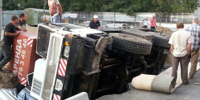 В Тирасполе перевернулся 25-тонный строительный автокран