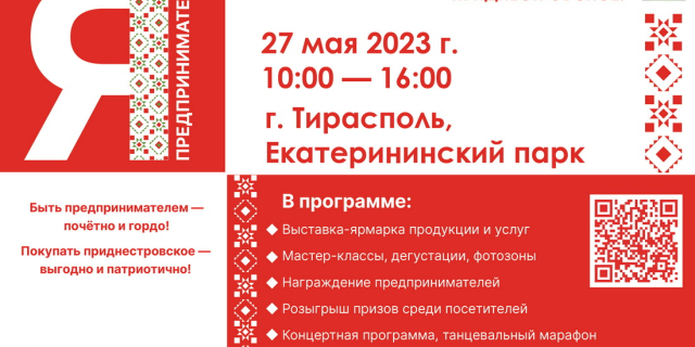 27 мая в Екатерининском парке Тирасполя пройдёт фестиваль «Я – предприниматель» В программе – ярмарка, мастер-классы, презентации, дегустации и концерт 19 Май, 2023, 11:17 Анонс Тирасполь ТПП