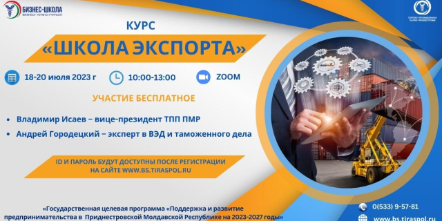Торгово-промышленная палата ПМР запустила «Школу экспорта» Онлайн-курс призван помочь слушателям получить необходимые знания для работы в сфере международной торговли 18 Июл., 2023, 17:42 Экономика ТПП Экспорт